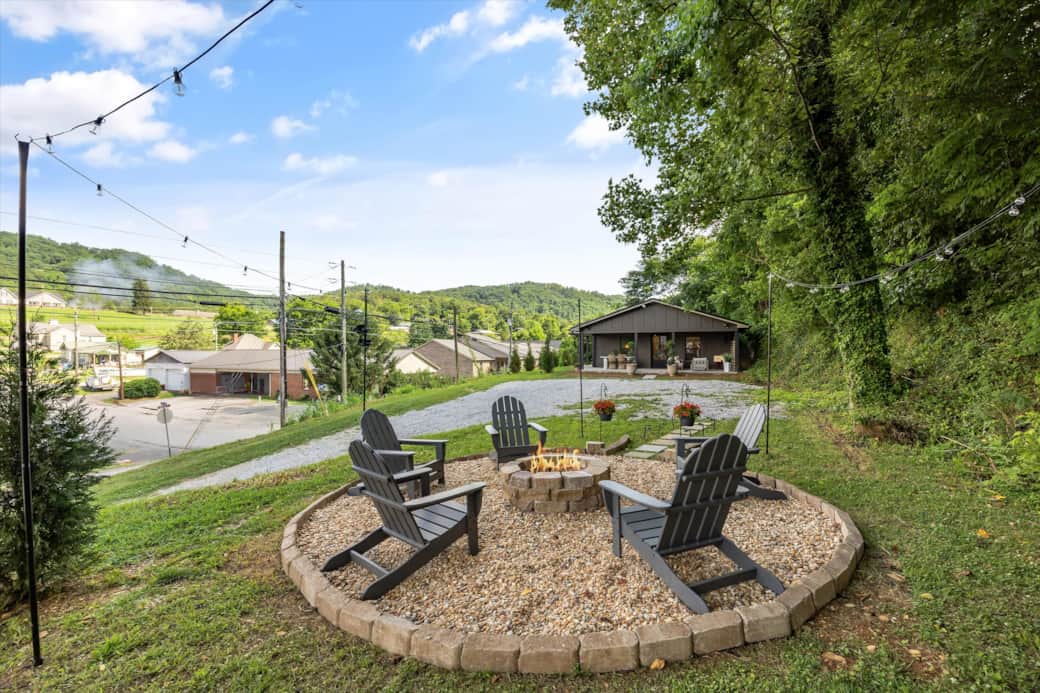 Cozy Smoky Mountains vacation rental in Tellico Plains – 2BR/2BA retreat with mountain views, fire pit, and walk-to-downtown dining.