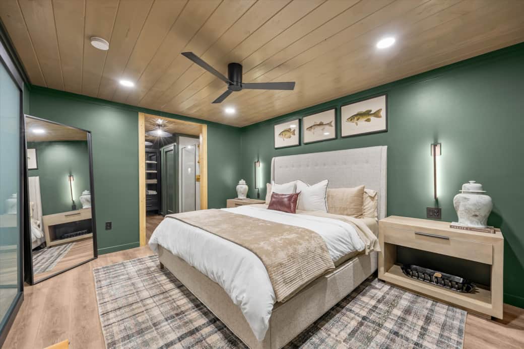 The space features boutique-style bedrooms (1 king, 1 queen, plus a queen sleeper sofa), a cozy living room with TV and couches, a fully equipped kitchen with breakfast island. Enjoy high-speed WIFI, keyless entry, and convenient on-site parking.